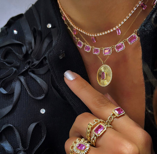 14K Yellow Gold Pink Sapphire in Diamond Pendant