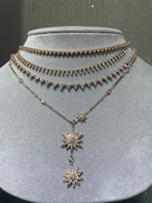14K Rose Gold Double Drop Starburst Diamond Necklace