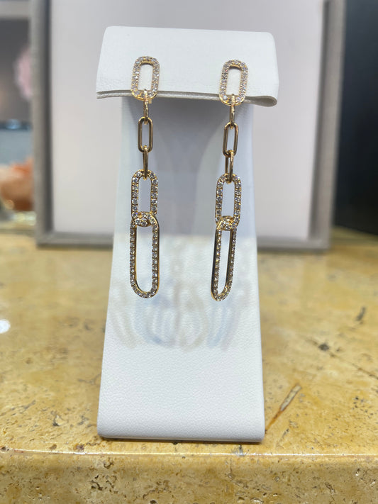 14k Yellow Gold Diamond Paper Clip Chain Earrings